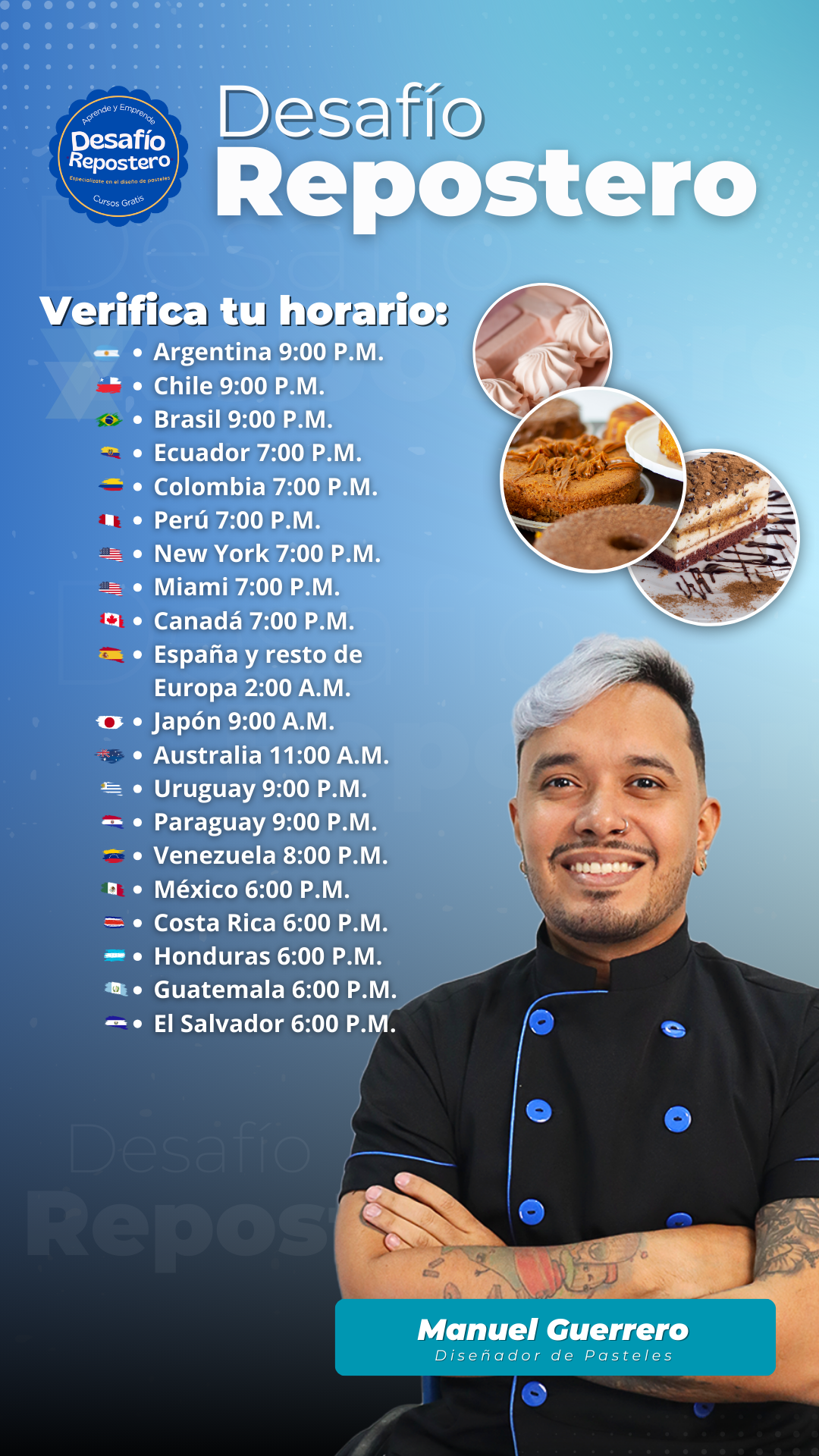 En estas 4 clases totalmente gratuitas aprenderás a dominar las técnicas profesionales mas valoradas de la pasteleria moderna, no necesitas experiencia y daras tus primeros pasos como emprenderora repostera